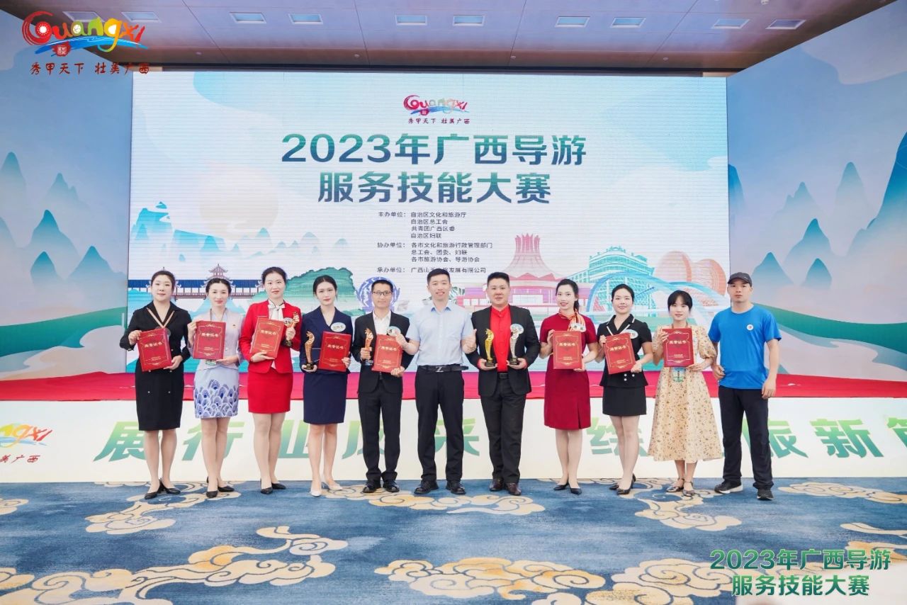 2023年6月18日至21日,由广西壮族自治区文化和旅游厅、自治区总工会、共青团广西区委、自治区妇联共同主办的2023年导游服务技能大赛在南宁举行,福达文旅旗下桂林国旅导游刘毅取得优异成绩,获得二等奖及最佳应变奖,并荣获广西金牌导游称号。桂林国旅总经理助理汪明作为桂林导游代表队辅导老师全程参与参赛选手赛前培训及参赛辅导工作。