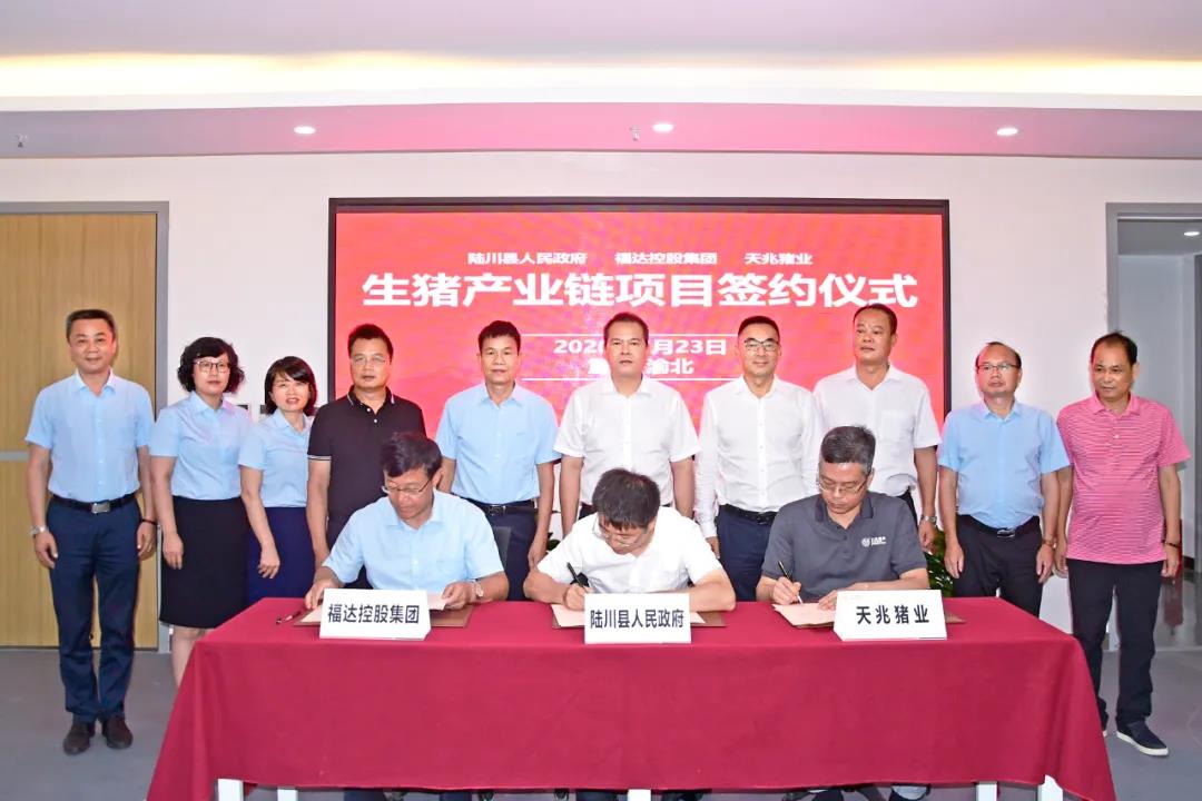 7月23日,玉林市陆川县人民政府与福达控股集团有限公司、四川天兆猪业股份有限公司签订了《生猪全产业链项目投资框架协议》;同日,桂林市临桂区人民政府与福达控股集团有限公司、四川天兆猪业股份有限公司签署了《种猪核心场项目投资框架协议》,标志着福达集团加快向农产品冷链的上游产业布局发展。