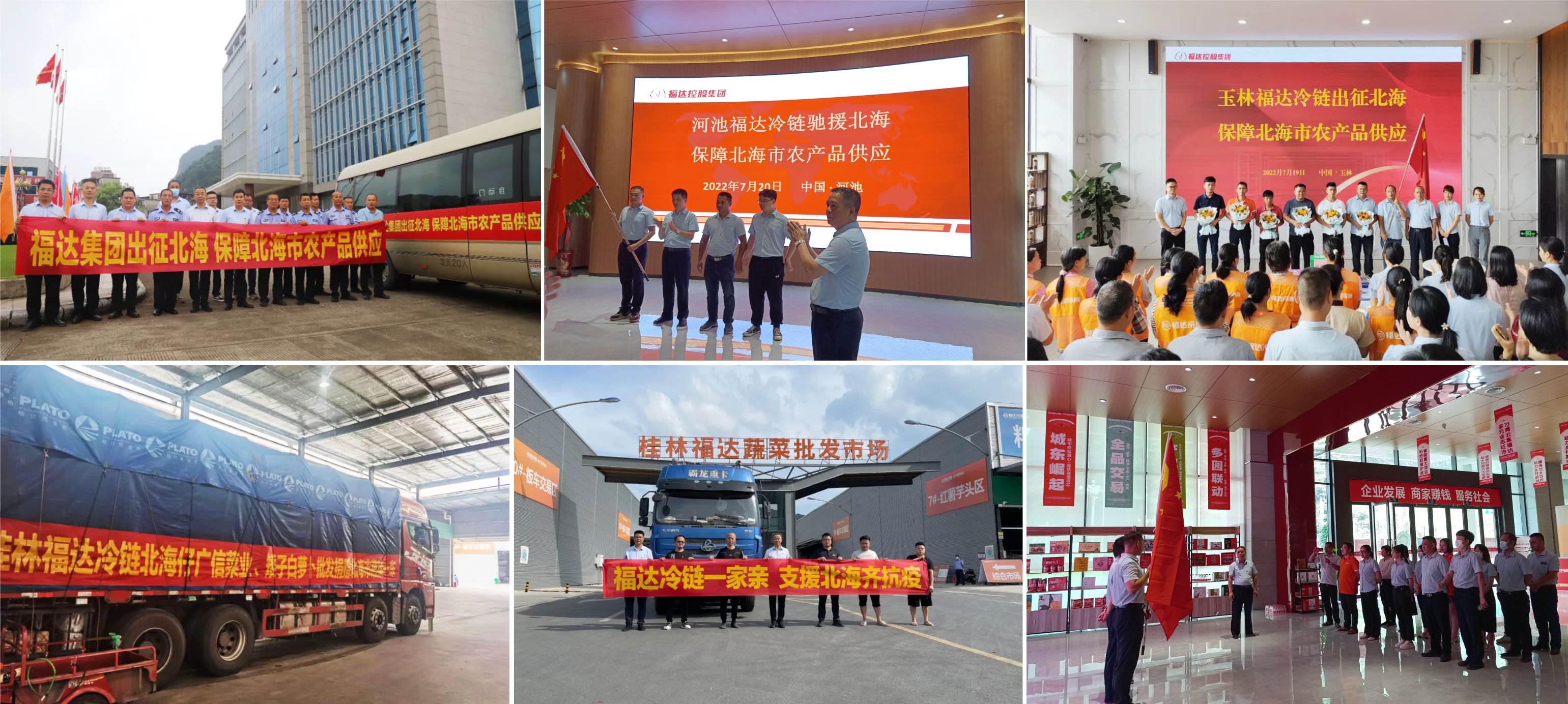 福达集团还从旗下桂林福达冷链、玉林福达冷链、河池福达冷链调配园区运营专业人员驰援北海。7月19-20日,二十多名志愿者从桂林、玉林、河池三地出发分赴北海,他们将负责北海福达冷链疫情防控、后勤保障、市场管理、业务对接等方面的援助工作,充实北海福达冷链抗“疫”力量,确保园区稳定运行。